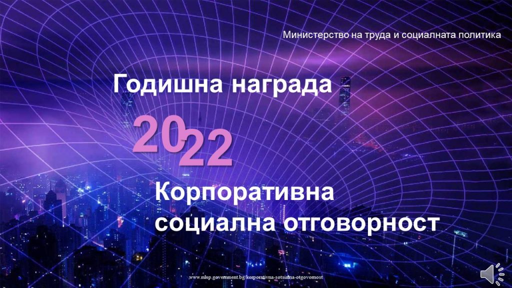 Кандидатстването е до 30 ноември 2022 г. чрез попълване на формуляр, който може да изтеглите тук: https://www.mlsp.government.bg/korporativna-sotsialna-otgovornost и да изпратите на адрес: CSR_awards@mlsp.government.bg.